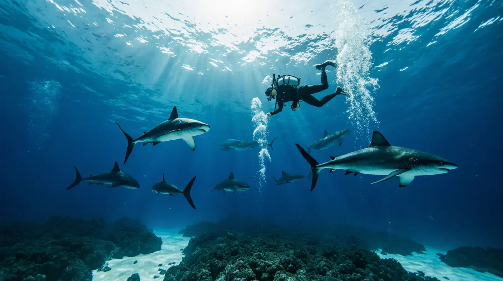 Tiger sharks here grow up to 5 meters (16 feet) long and are striking with their bold stripes fading as they mature. Dive operators like Red Rock Divers offer cage diving expeditions, allowing safe yet thrilling proximity to these apex predators. Beyond tiger sharks, Aliwal Shoal features vibrant coral reefs, giant sea fans, and more than 200 fish species.